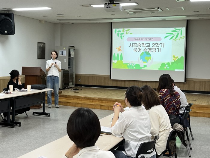 이어서 SDGs 수업사례 발표를 진행했습니다. 김소윤(원곡중), 이은아(의왕부곡중), 오인하(시곡중), 채현명(시곡중) 선생님께서 각자 수업에서의 SDGs 연계 사례를 발표해주셨고, 참석하신 선생님들과 함께 의견을 나누며 깊이를 더해가는 시간을 가졌습니다.