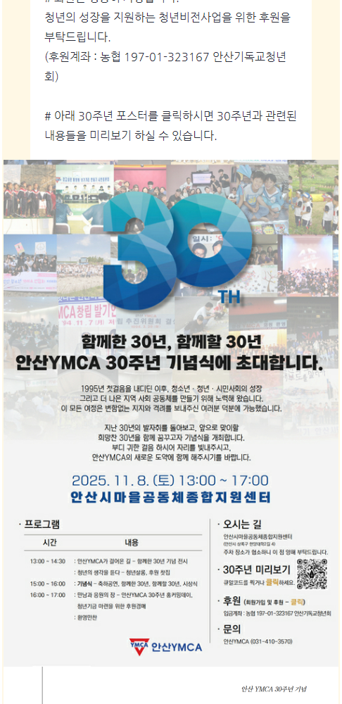 함께한 30년, 함께할 30년! 안산YMCA 30주년 기념식