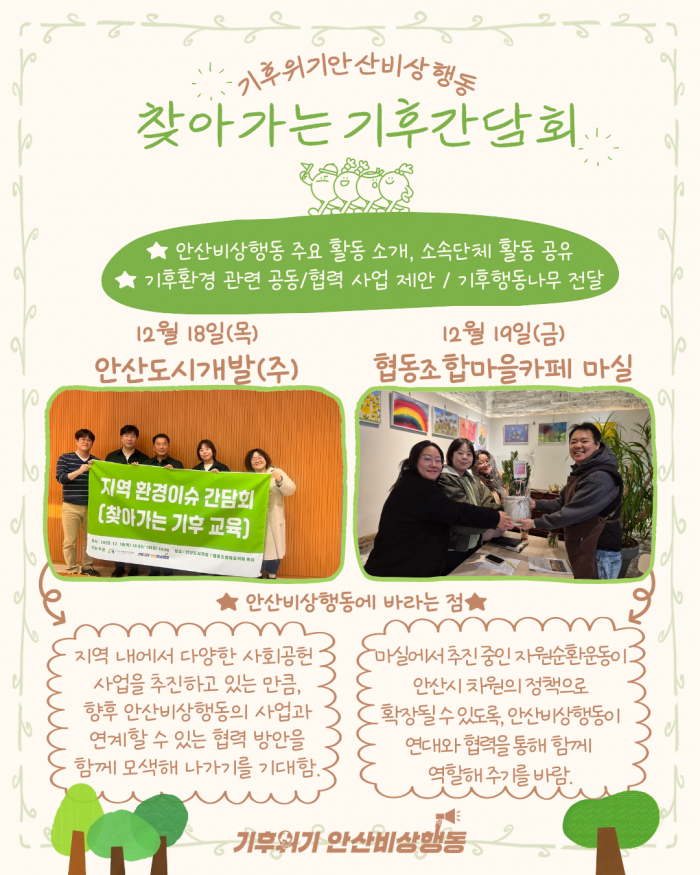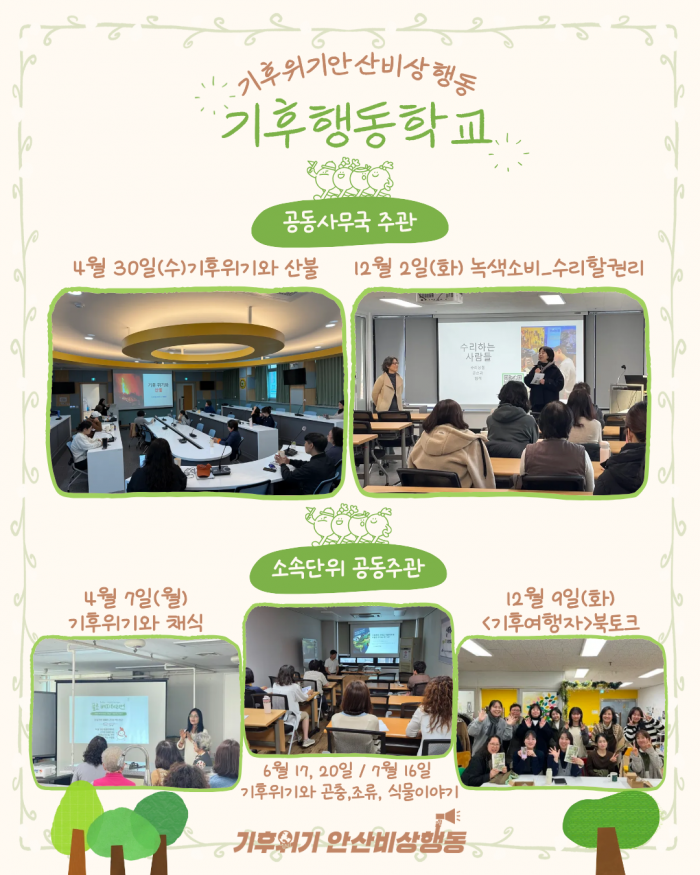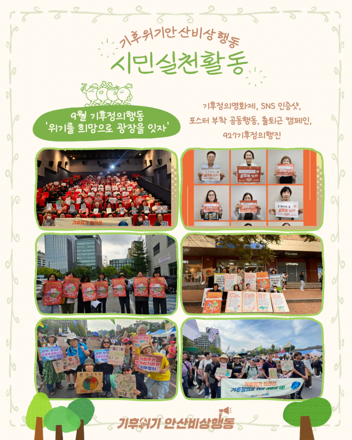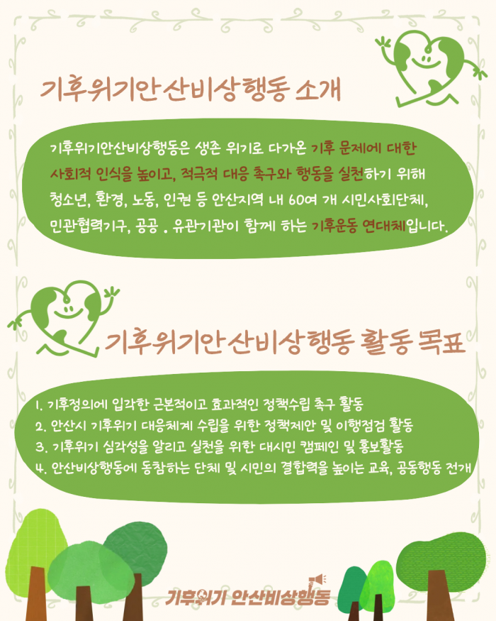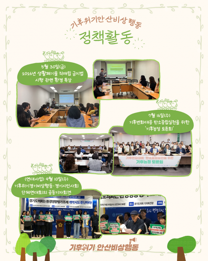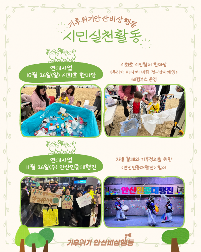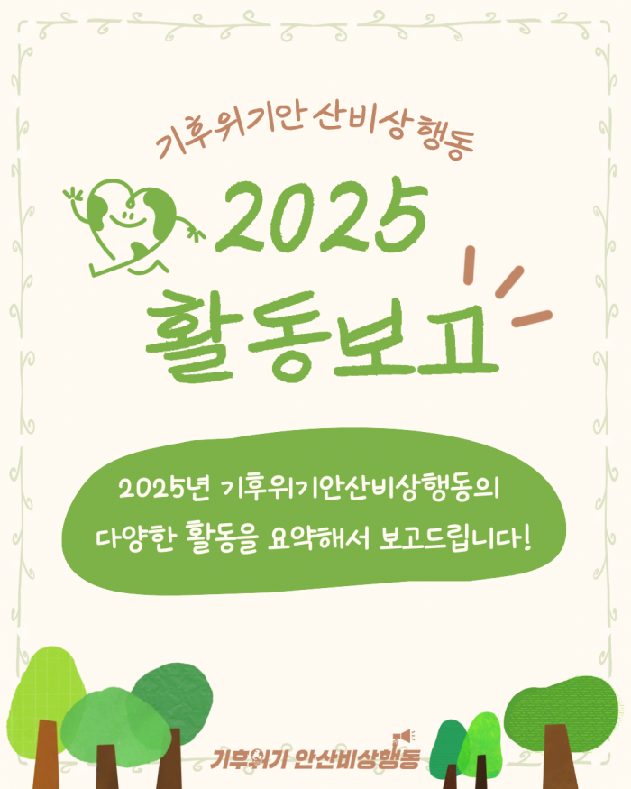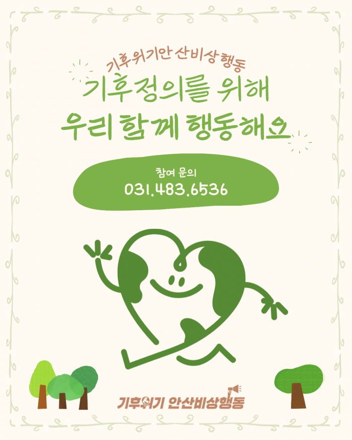 2025년 기후위기안산비상행동에서 진행한 다양한 활동을 요약해서 공유드립니다. 작년 한 해 기후정의를 위해 함께해 주셔서 감사드립니다. 2026년에도 기후불평등에 맞선 투쟁과 연대를 위한 활동에 함께해 주세요~!! 문의 : 사무국 031-483-6536(운영위원장 홍지인)