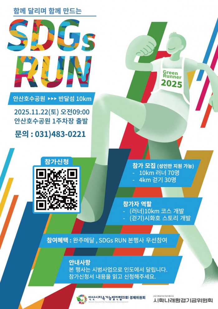 안산시지속가능발전협의회 경제위원회는 ‘반달섬 활성화(경제), 시화호 스토리 전달(환경), 시민 건강 증진(사회)’을 목표로 안산의 러너와 시민이 직접 참여해 새로운 러닝 코스를 개발하고 시화호의 이야기를 담은 스토리를 함께 만들어가는 과정으로 본 행사를 기획했습니다.